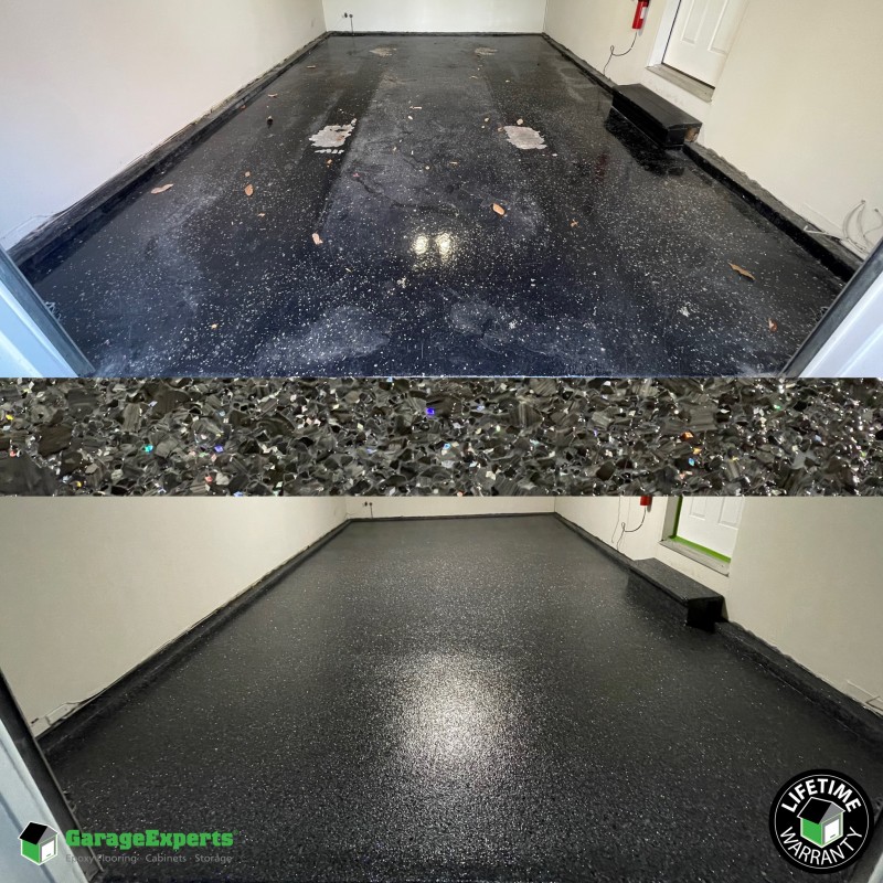 Moto Shop Garage Floor Epoxy Flakes Zone Garage
